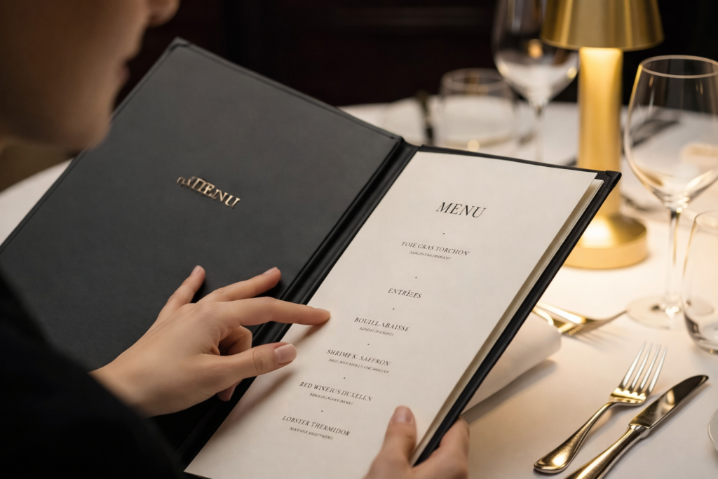Custom handmade menus designed to elevate dining presentation and reinforce hospitality brand identity.