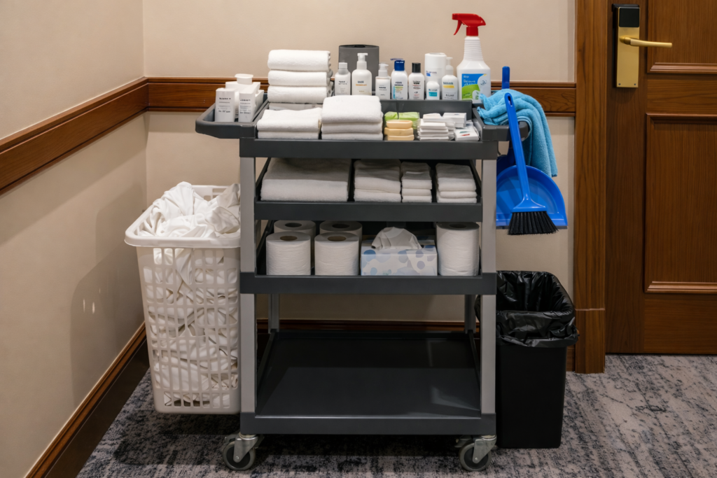 Essential tools and equipment designed to support maintenance, setup, and daily hospitality operations for smooth hotel functioning.